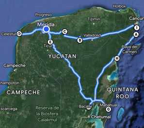 Today we're driving from Puerto Morelos to Valladolid. Here we will stay for lunch next to the cenote Zací and stroll through the picturous city center.